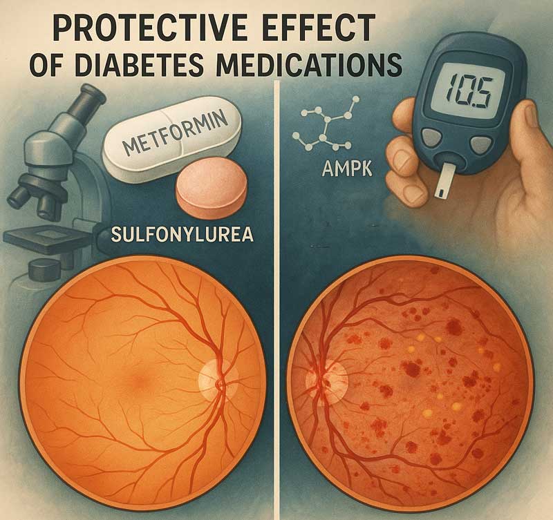 مصرف متفورمین و سولفونیل‌اوره‌ها (به‌تنهایی یا ترکیبی) از بیماران دیابتی در برابر رتینوپاتی دیابتی محافظت می‌کند.